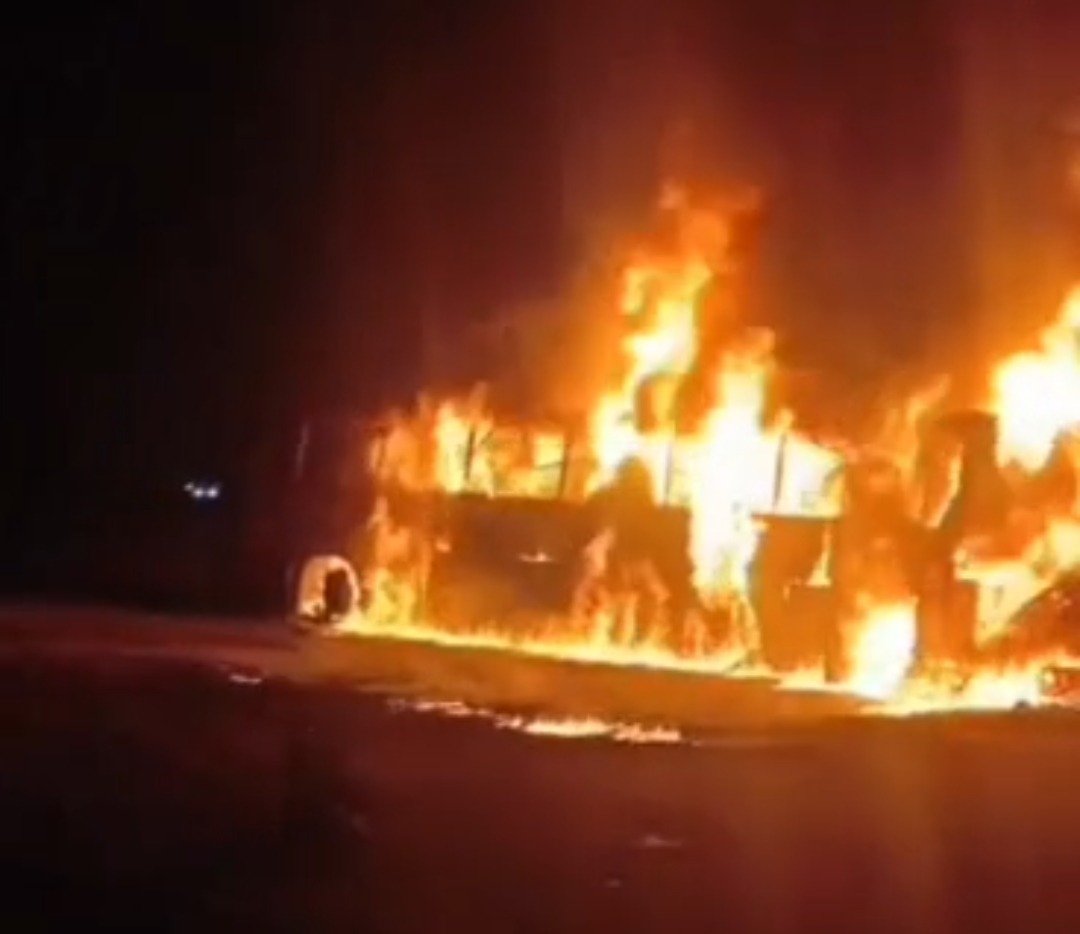 حب گڈانی موڑ کے قریب مسافر کوچ میں اچانک آگ بھڑک اٹھی، بس مکمل طور جل کر خاکستر