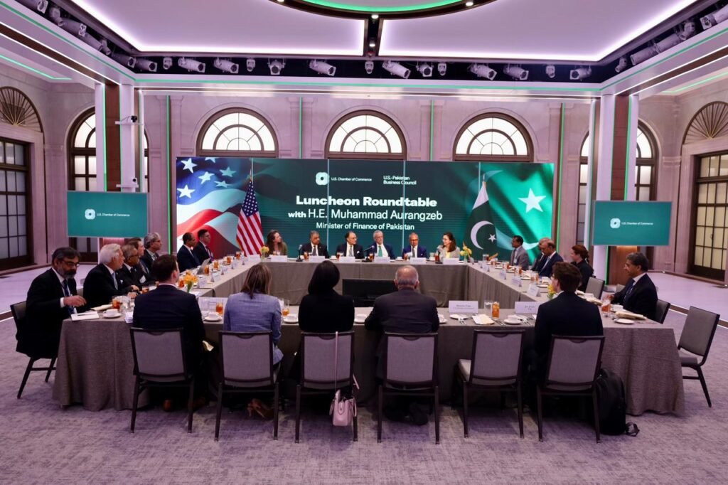 انہوں نے یہ بات عالمی بینک اور آئی ایم ایف کے موسم بہار اجلاس 2026 کے موقع پر یو ایس پاکستان بزنس کونسل کے زیر اہتمام ظہرانے میں گفتگو کرتے ہوئے کہی،اس موقع پر انہوں نے پاکستان میں کام کرنے والی امریکی کمپنیوں کے نمائندوں سے ملاقات بھی کی۔